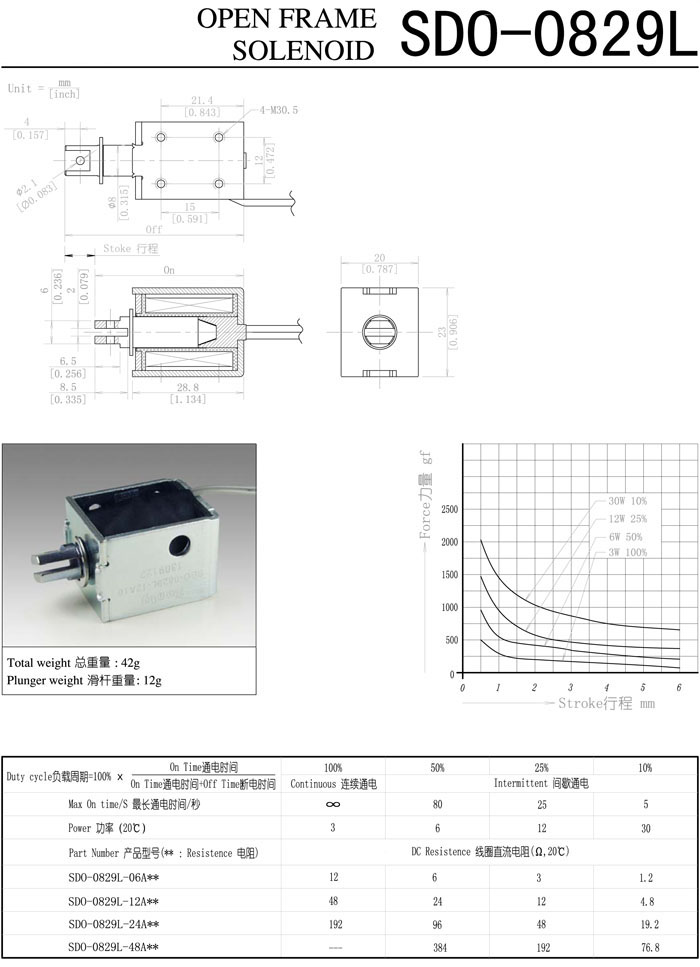 SDO-0829L-06A,SDO-0829L-12A,SDO-0829L-24A,SDO-0829L-48A,直動(dòng)電磁鐵