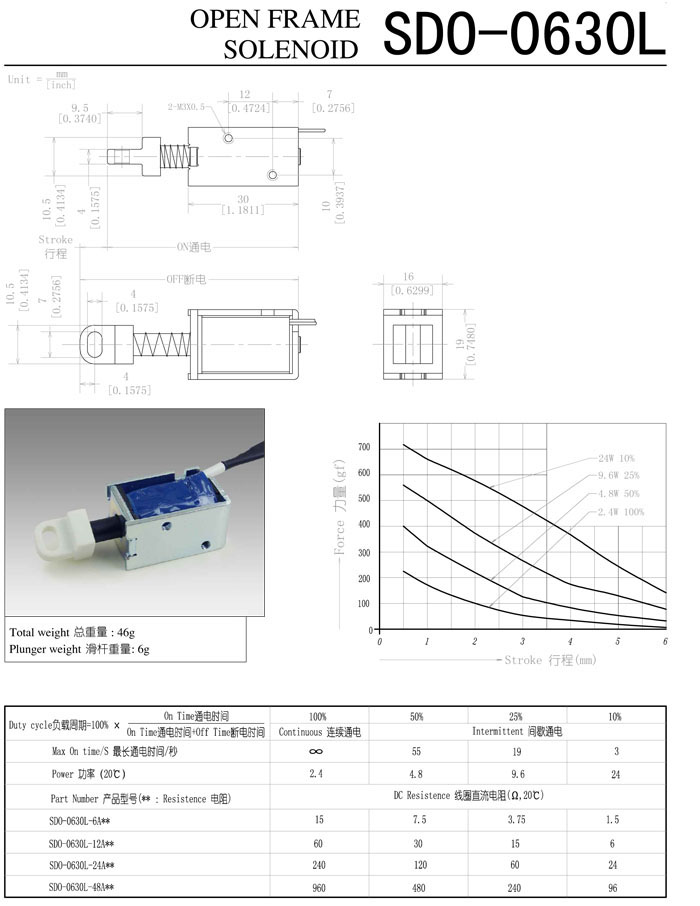 SDO-0630L-6A,SDO-0630L-12A,SDO-0630L-24A,SDO-0630L-48A,直動電磁鐵 |