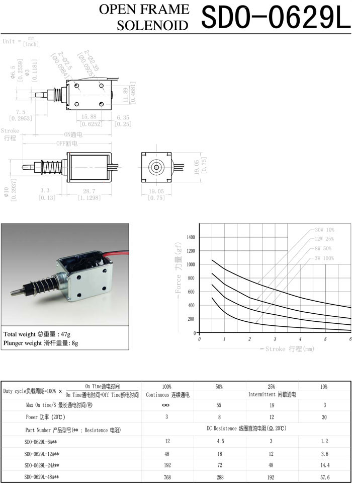 SDO-0629L-6A,SDO-0629L-12A,SDO-0629L-24A,SDO-0629L-48A,直動電磁鐵 |