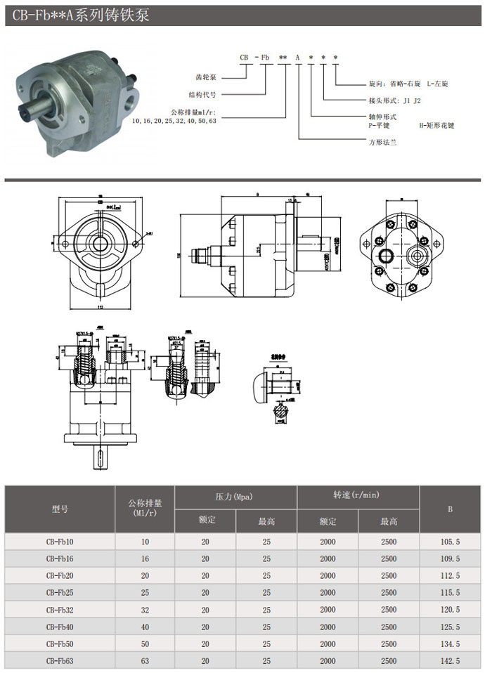 CB-Fb10,CB-Fb16,CB-Fb20,CB-Fb25,CB-Fb32,CB-Fb40,CB-Fb50,CB-Fb63,CB-Fb10AHJ2L,鑄鐵泵 |
