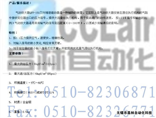 QFP-150,氣動放大(增速)器