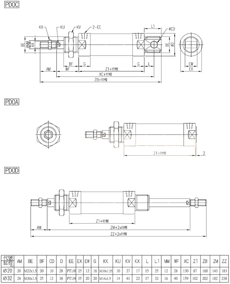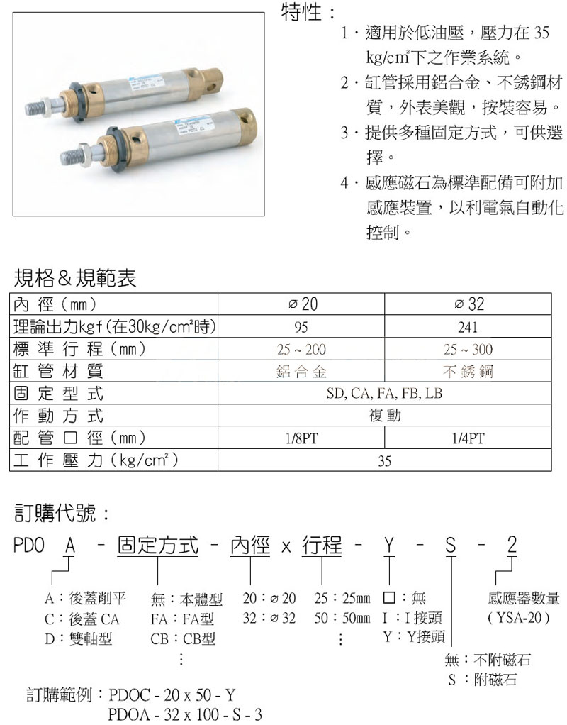 PDOA-32*125-S-3,PDOA-32*150-S-3,PDOA-32*175-S-3,PDOA-32*200-S-3,