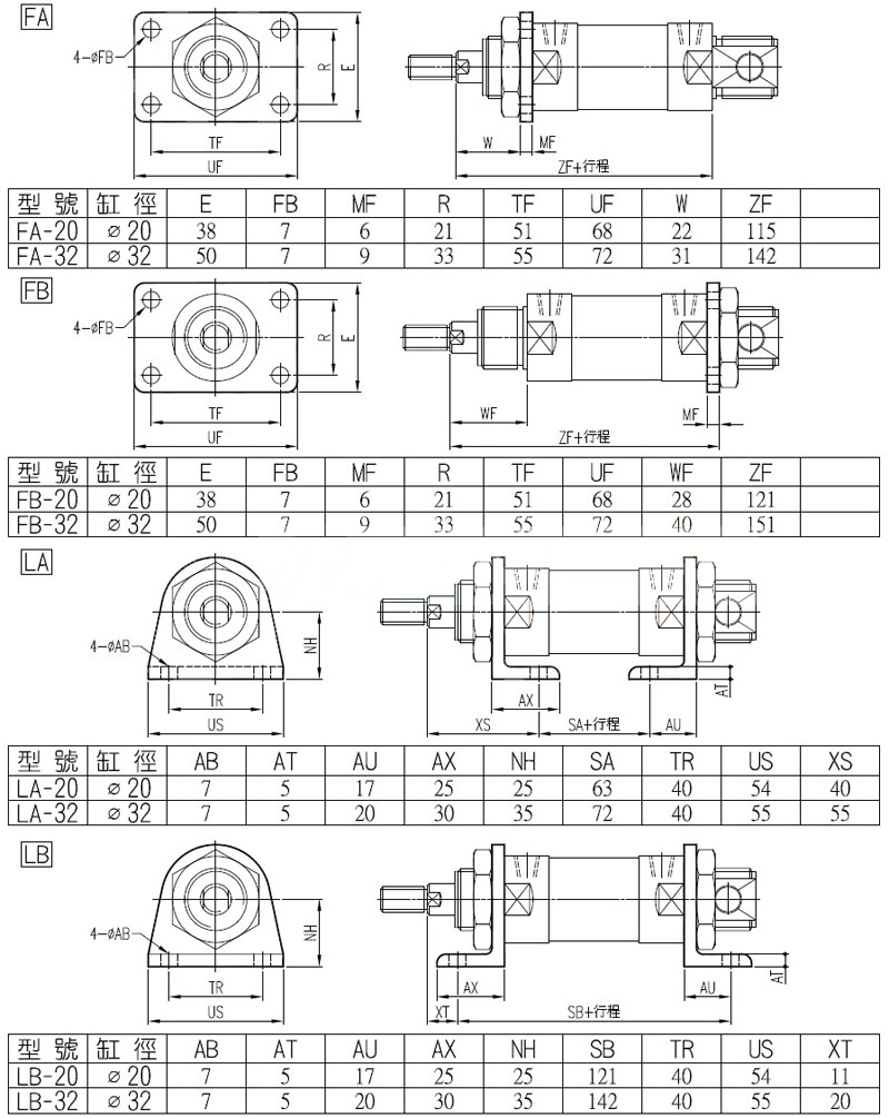PDOA-LB-32*125-S-3,PDOA-LB-32*150-S-3,PDOA-LB-32*175-S-3,PDOA-LB-32*200-S-3,