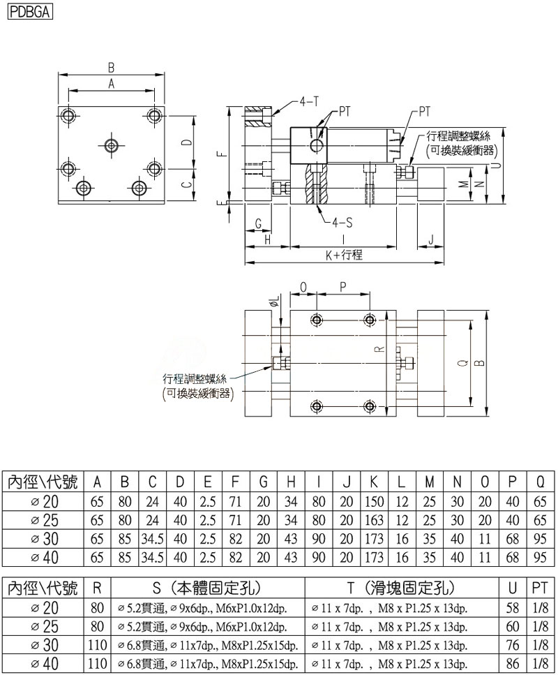 PDBGA-20*25,PDBGA-25*50,PDBGA-30*75,PDBGA-40*100,panix導(dǎo)桿滑座氣缸