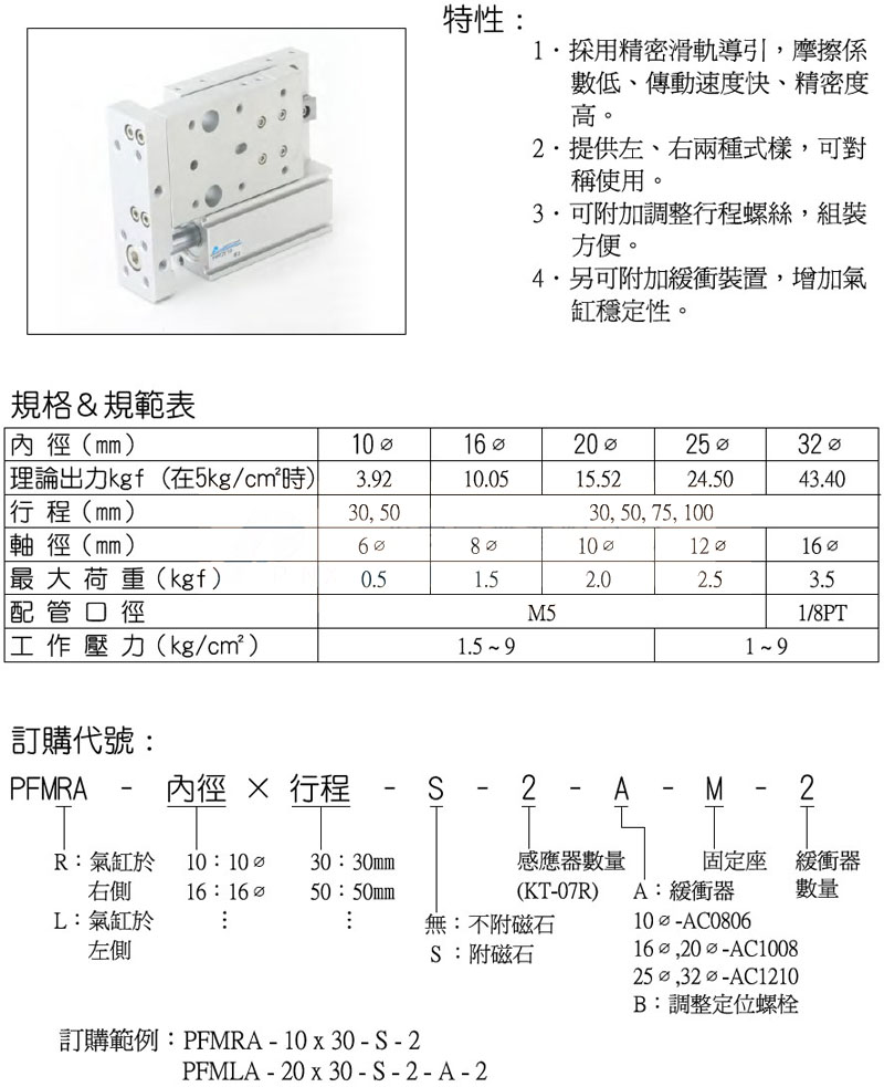 PFMRA-10,PFMRA-16,PFMRA-20,PFMRA-25,PFMRA-32,panix精巧型滑軌氣壓缸 |