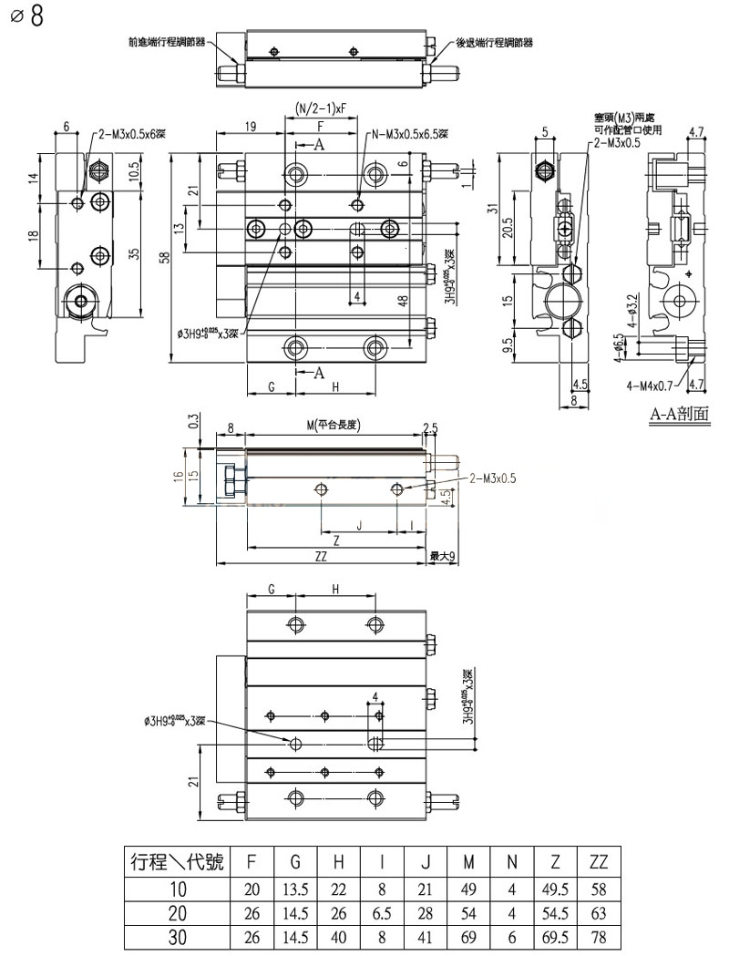 PXF-8-10,PXF-16-50,PXF-20-30,PXF-12-30,panix精巧型滑軌氣壓缸 |