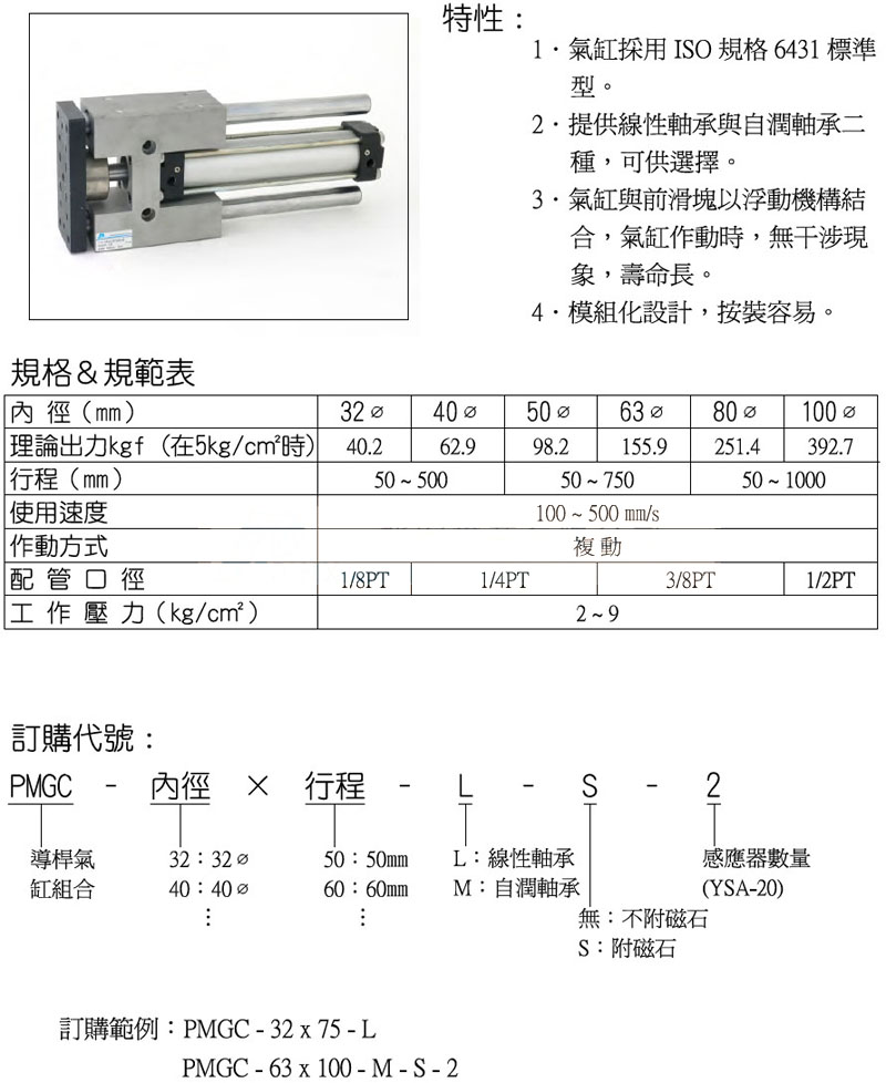 PMGC-32,PMGC-40,PMGC-50,PMGC-63,PMGC-80,PMGC-100,panix導(dǎo)桿氣缸組合
