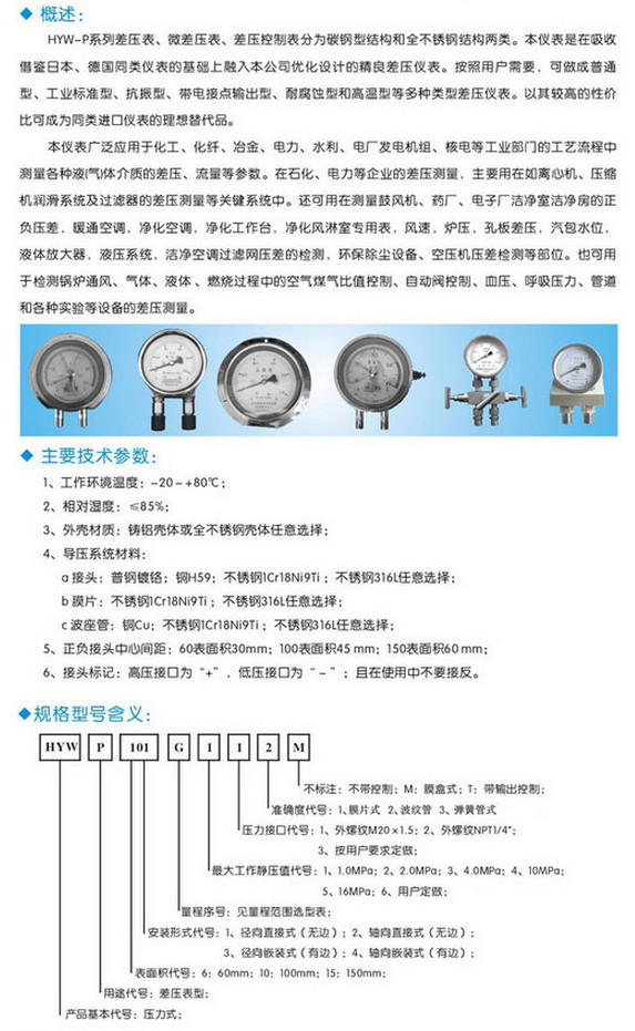 HYW-P101G112M,HYW-P63G212M,HYW-P151G412M,HYW-P102G322M,差壓表 |