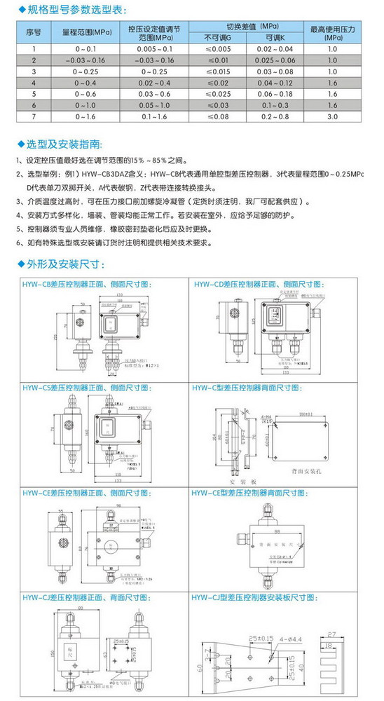 HYW-C11D1M,HYW-CF51D1M,HYW-CEx33D1M,HYW-C42D1M,差壓控制器