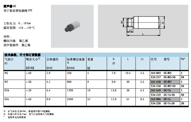 UC-M5,UC-M5-50,UC-M7,UC-M7-50,UC-1/8,UC-1/4,festo消聲器