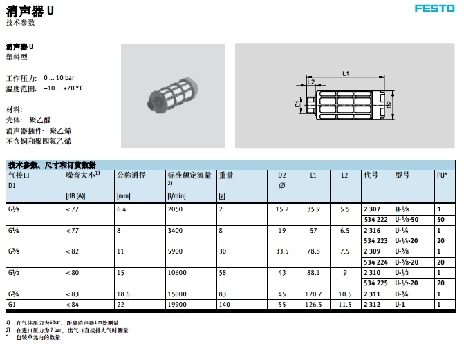U-1/8,U-1/8-50,U-1/4,U-1/4-20,U-3/8,U-3/8-20,festo消聲器