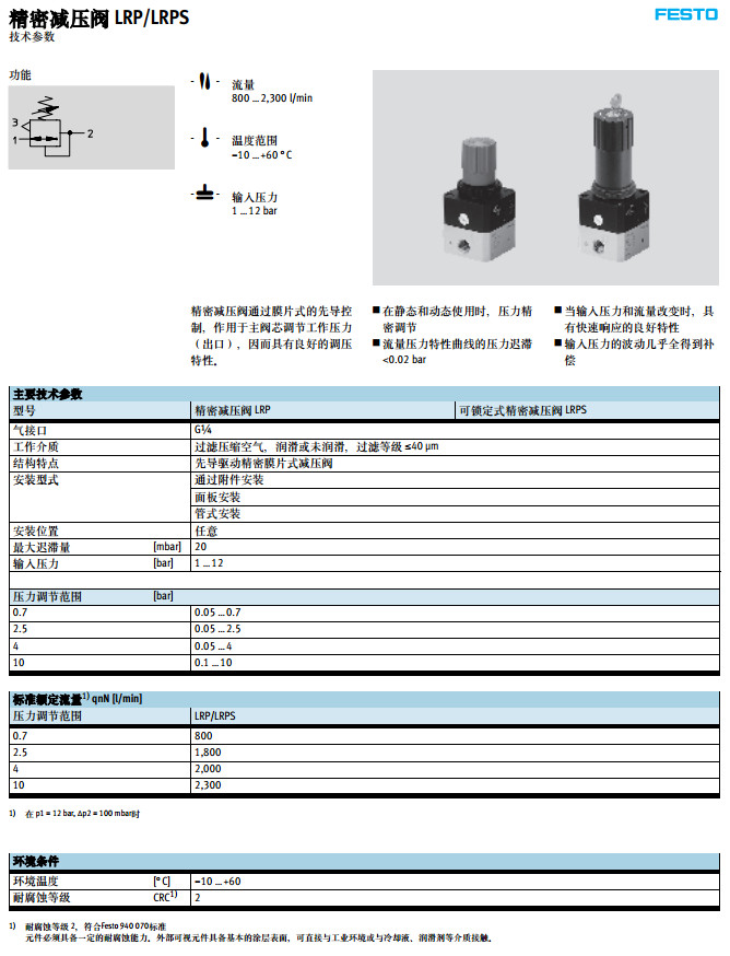 LRP-1/4-0.7,LRP-1/4-2.5,LRPS-1/4-4,LRPS-1/4-10,festo精密減壓閥 |