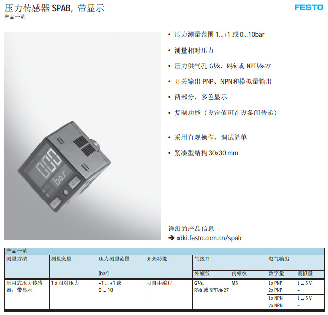 SPAB-B2R-G18,SPAB-B2R-R18,SPAB-P10R-G18,SPAB-B2R-N18,festo壓阻式壓力傳感器 |