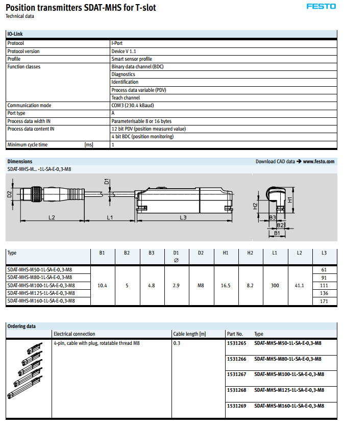 SDAT-MHS-M160-1L-SA-E-0.3-M8,