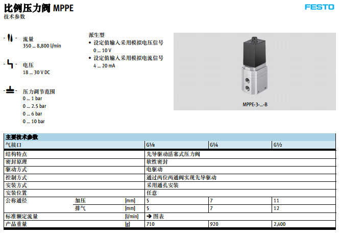 MPPE-3-1/8-1-010-B,MPPE-3-1/4-1-010-B,MPPE-3-1/2-1-010-B,festo比例壓力閥 |