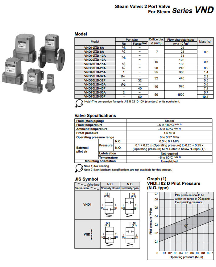 VND102D-6A,VND104D-6A,VND200D-10A,VND300D-20A,VND400D-25A,VND500D-32A,VND600D-40A,VND700D-50A,SMC蒸汽用2通閥
