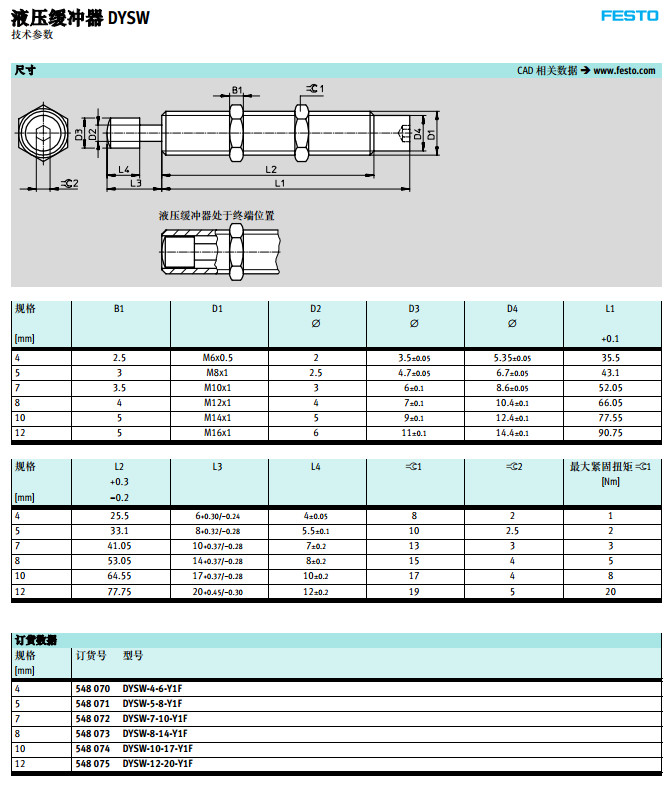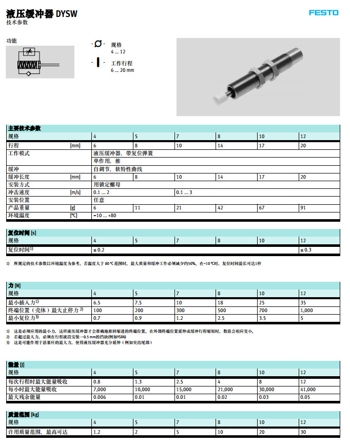 DYSW-4,DYSW-5,DYSW-7,DYSW-8,DYSW-10,DYSW-12,festo液壓緩沖器