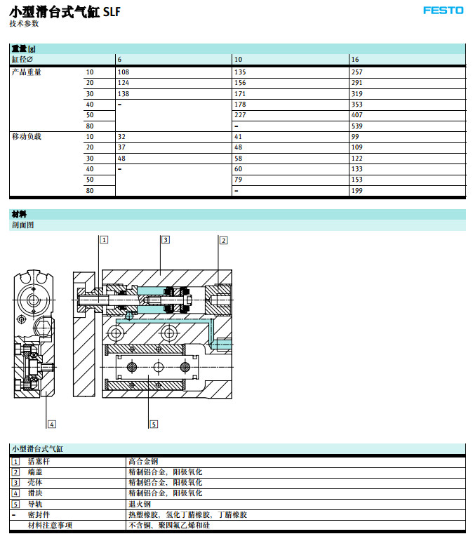 SLF-6-10,SLF-10-10,SLF-16-10,SLF-6-20,SLF-10-30,festo小型滑臺(tái)式氣缸