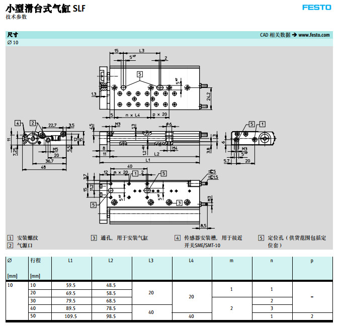 SLF-6-10,SLF-10-10,SLF-16-10,SLF-6-20,SLF-10-30,festo小型滑臺式氣缸 |