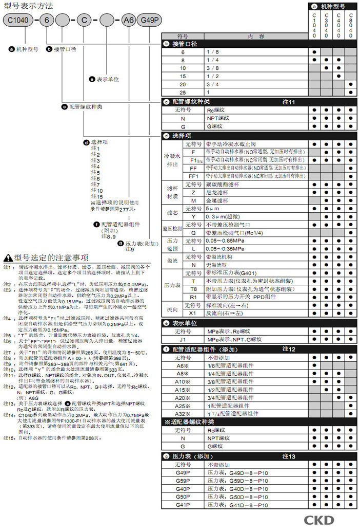 C1040-6,C1040-8,C3040-8,C3040-10,C4040-8,C4040-10,C4040-15,C8040-20,C8040-25,CKD二聯(lián)件