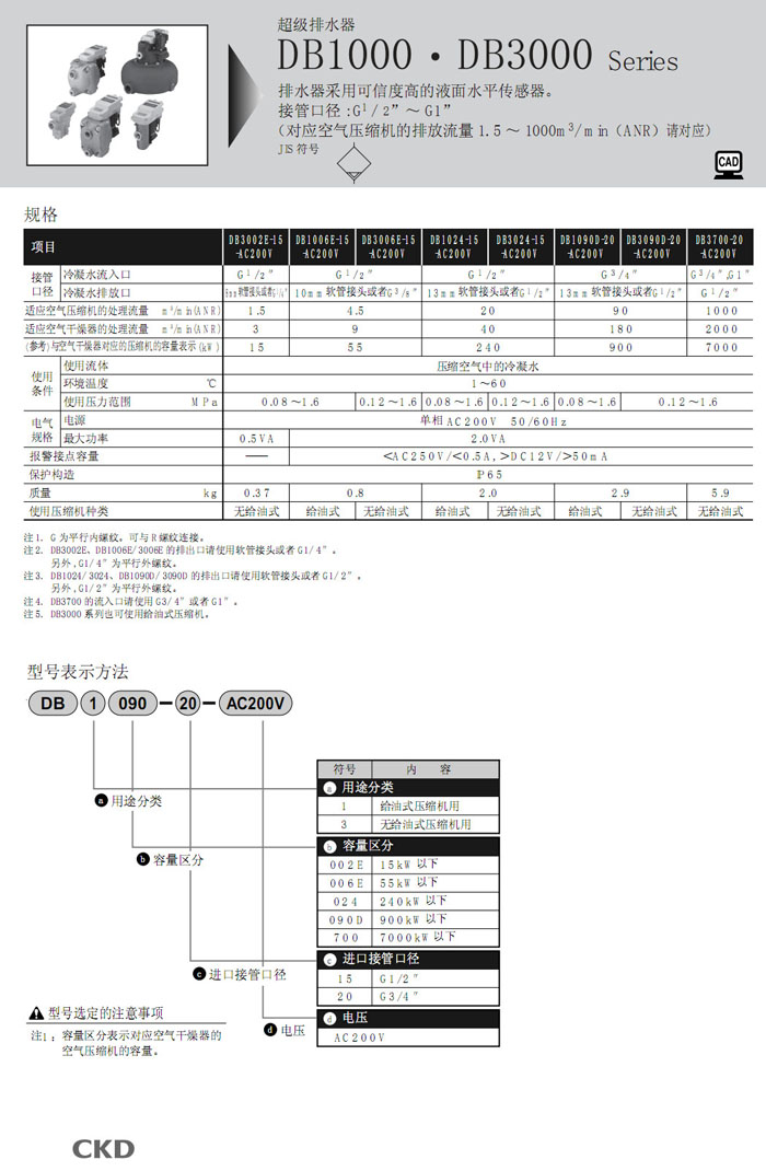 DB3002E-15,DB1006E-15,DB3006E-15,DB1024-15,DB3024-15,DB1090D-20,DB3090D-20,DB3700-20,CKD排水器