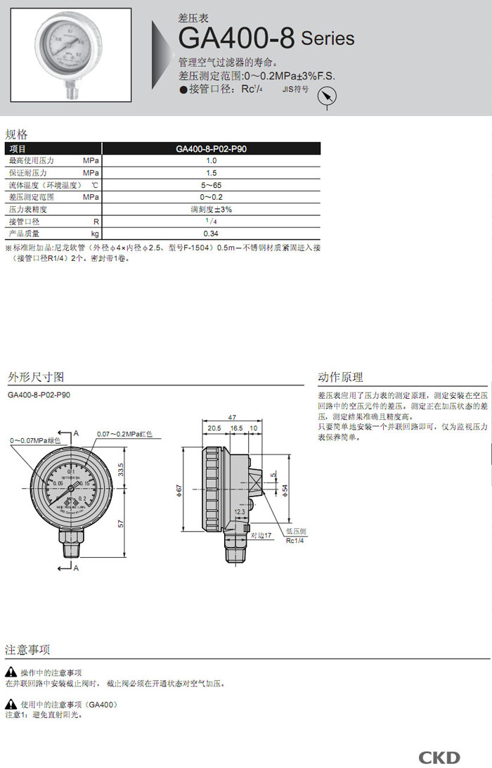 GA400-8-P02-P90,CKD差壓表
