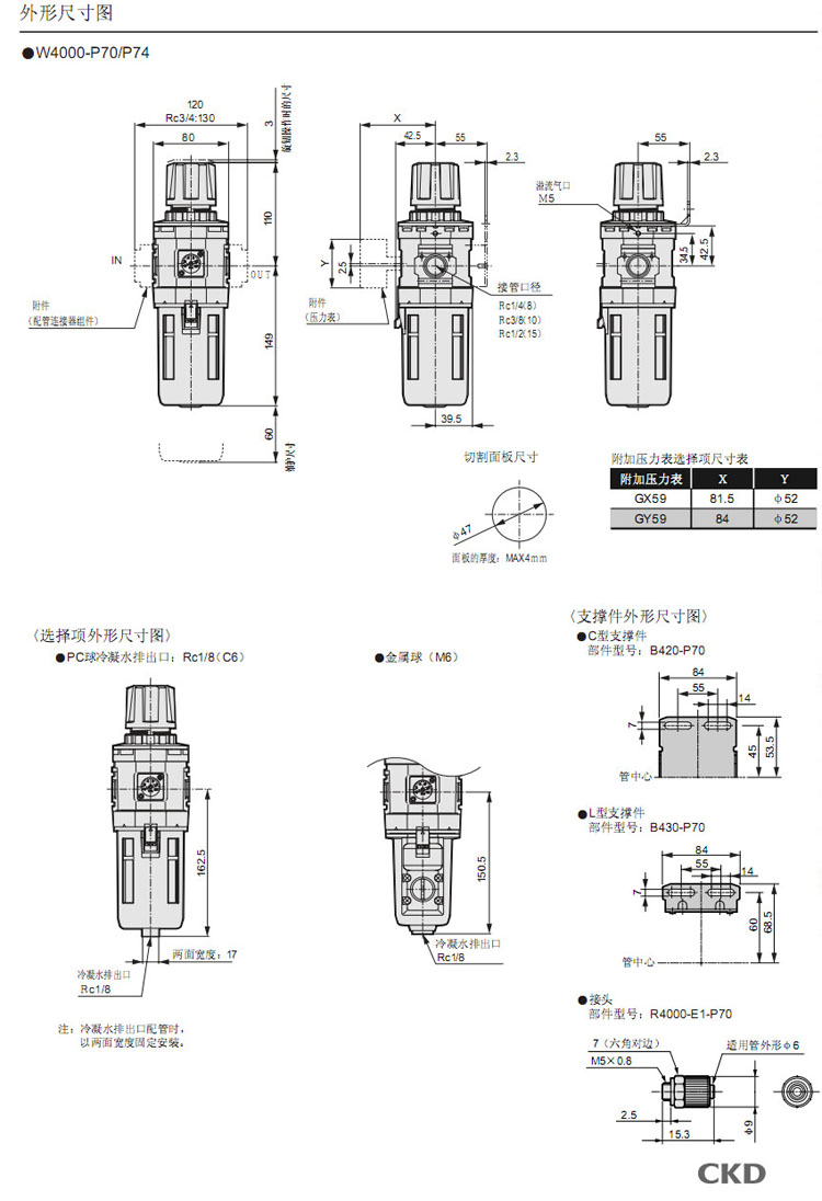 W3000-8,W3000-10,W4000-8,W4000-10,W4000-15,CKD過(guò)濾減壓閥