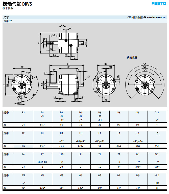 DRVS-6,DRVS-8,DRVS-12,DRVS-16,DRVS-25,DRVS-32,DRVS-40,festo擺動氣缸
