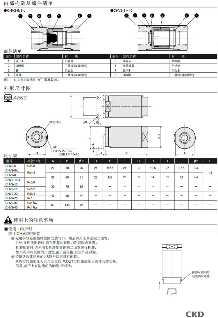 CHV2-6,CHV2-8,CHV2-10,CHV2-15,CHV2-20,CHV2-25,CHV2-32,CHV2-40,CHV2-8-J,CHV2-10-J,CKD止回閥