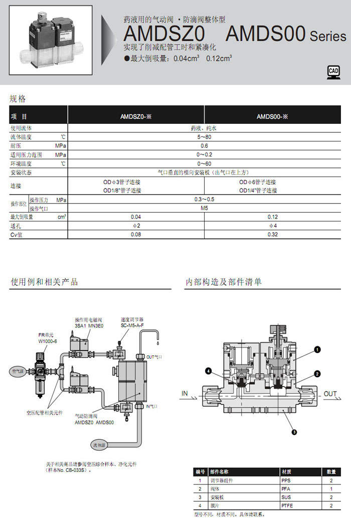 AMDSZ0-3US,AMDS00-6US,AMDSZ0-6BUS,AMDS00-8BUS,AMDSZ0-3UF,AMDS00-6UJ,CKD藥液用氣動閥