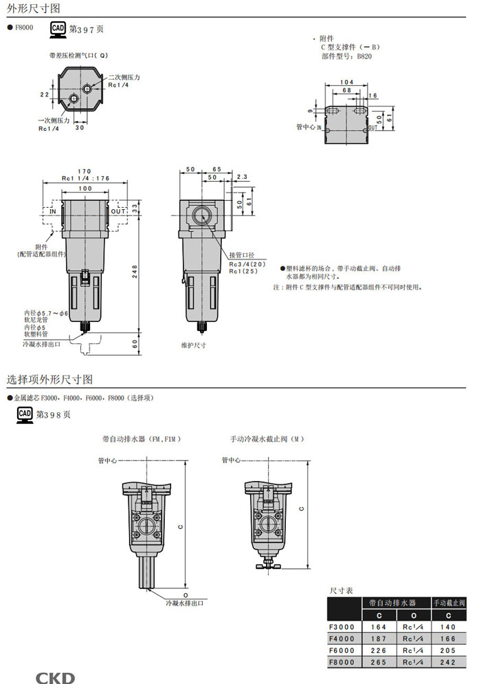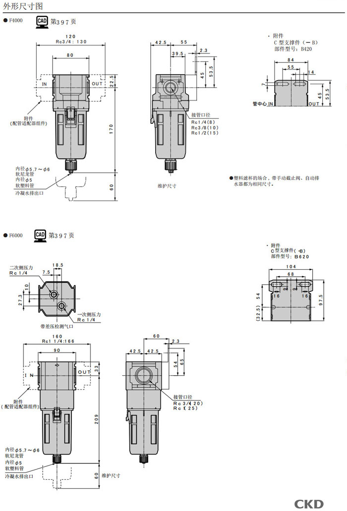 F1000-6,F1000-8,F3000-8,F3000-10,F4000-8,F4000-10,F4000-15,F6000-20,F8000-25,CKD過濾減壓閥 |