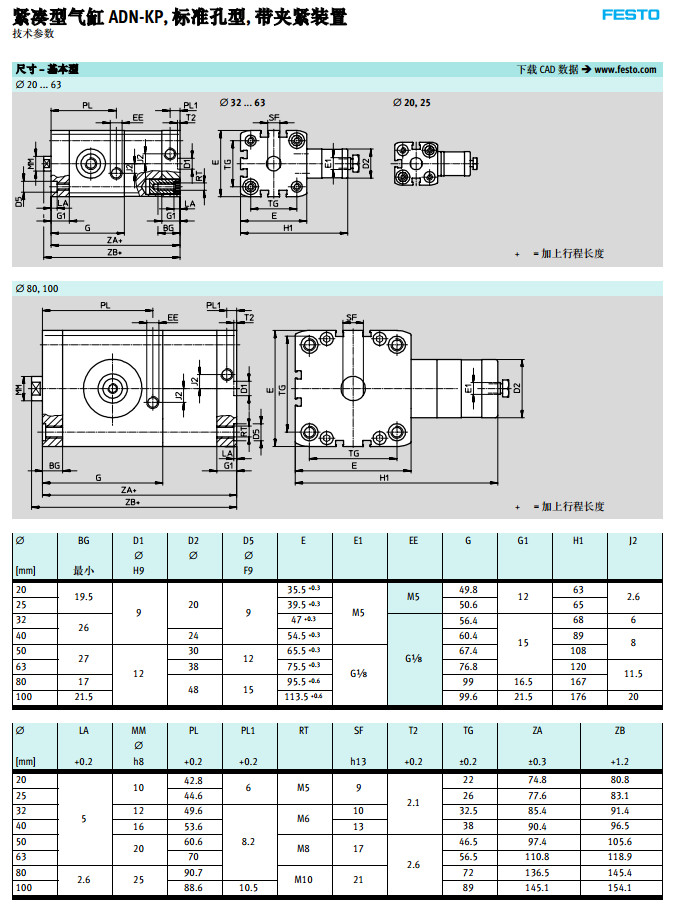 ADN-25-50-KP,ADN-32-50-KP,ADN-40-50-KP,ADN-32-50-KP,festo緊湊型氣缸