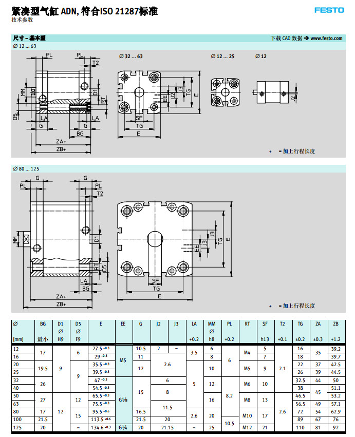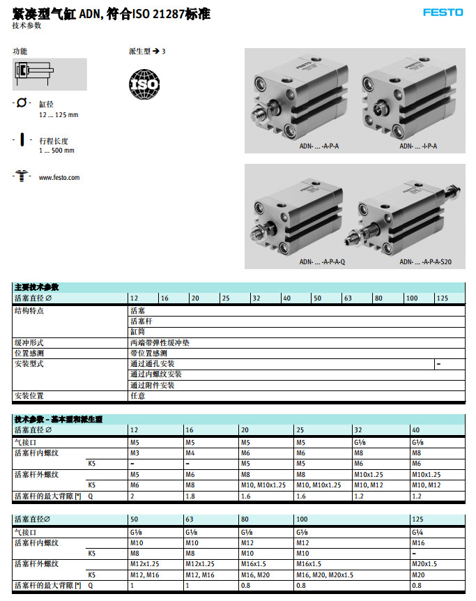 ADN-12,ADN-16,ADN-20,ADN-25,ADN-32,ADN-40,ADN-50,festo緊湊型氣缸 |