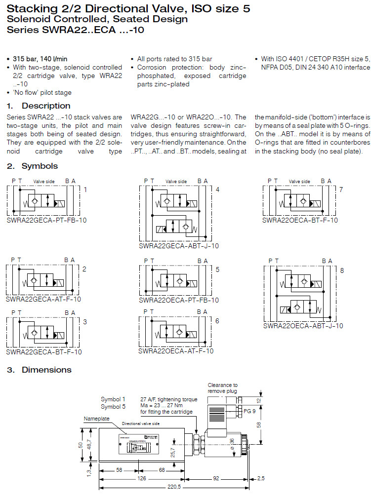 SWRA22GECA-AT-F-10,SWRA22GECA-PT-F-10V,SWRA22GECA-BT,SWRA22GECA-T,Bucher疊加閥