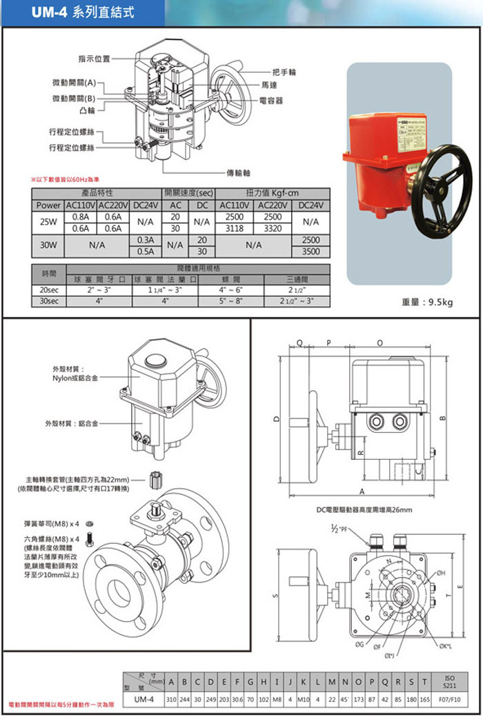 1. 直結式電動馬達驅動器需裝置在ISO 5211高平臺是的凡而或蝶閥上。