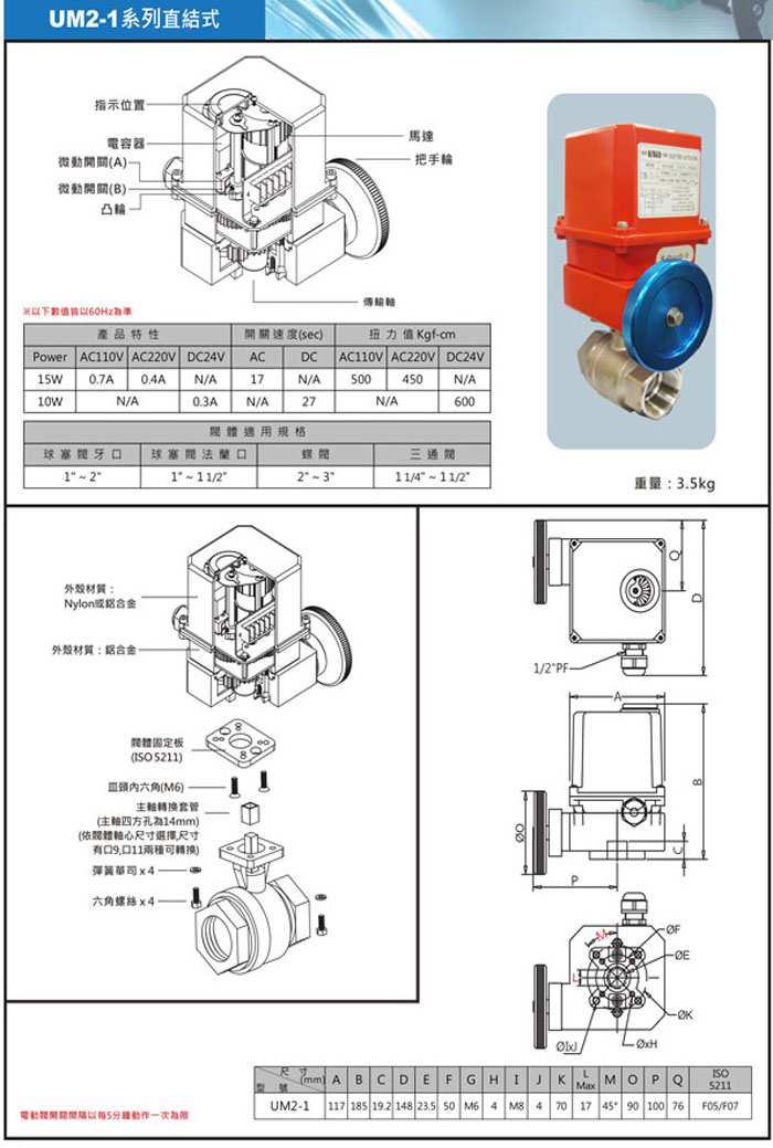 1. 直結(jié)式電動(dòng)馬達(dá)驅(qū)動(dòng)器需裝置在ISO 5211高平臺是的凡而或蝶閥上。