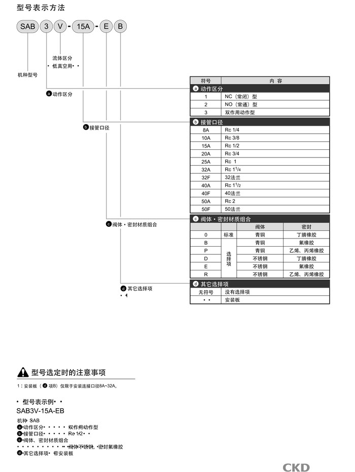 SAB1V-8A,SAB1V-10A,SAB1V-15A,SAB1V-20A,SAB1V-25A,SAB1V-32A,SAB1V-32F,SAB1V-40A,CKD氣控式2通閥