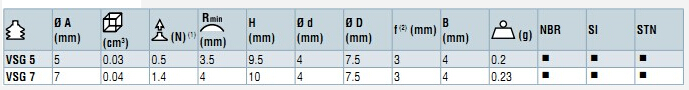 VSG系列通用吸盤,波紋形2.5褶,Ø5和7mm兩種,材料:丁腈橡膠(NBR),硅膠(SI)。
