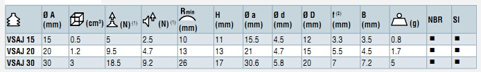VSAJ系列通用吸盤,波紋形1.5褶,Ø15 - 30mm,材料:丁腈橡膠(NBR),硅膠(SI)。