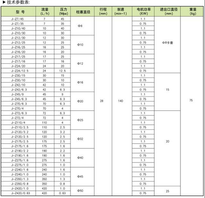 J-Z-7/45,J-Z--7/35,J-Z-10/40,J-Z-10/30,J-Z-12/30,J-Z-12/25,J-Z-16/25,柱塞式計(jì)量泵