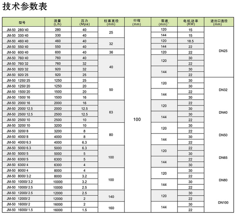 JM-50-10000/2.5,JM-50-12000/2.5,JM-50-12000/2,JM-50-16000/2,JM-50-16000/1.5,