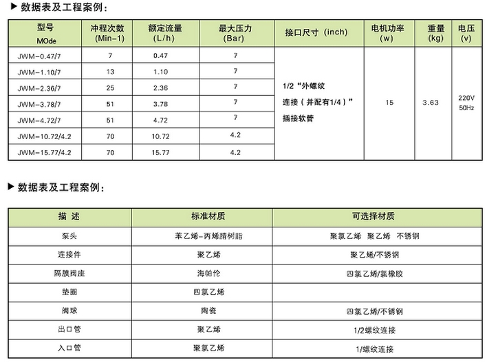 JWM-0.47/7,JWM-1.10/7,JWM-2.36/7,JWM-3.78/7,JWM-4.72/7,JWM-10.72/4.2,JWM-15.77/4.2,械隔膜式計量泵
