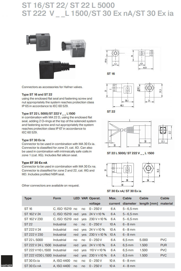 ST16,ST162V24,ST162V230,ST22,ST222V24,ST222V230,ST22L5000,ST222V24L1500,ST222V110L1500,Hafner電磁線圈 |