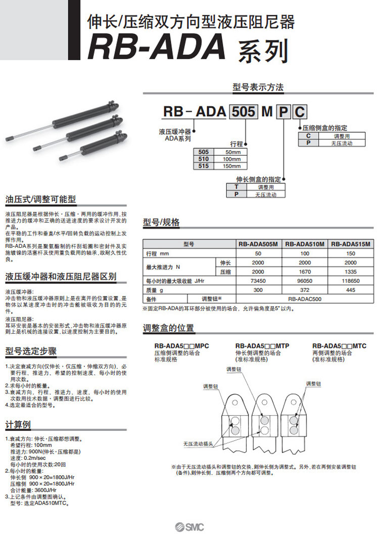 RB-ADA505M,RB-ADA510M,RB-ADA515M,SMC液壓阻尼器