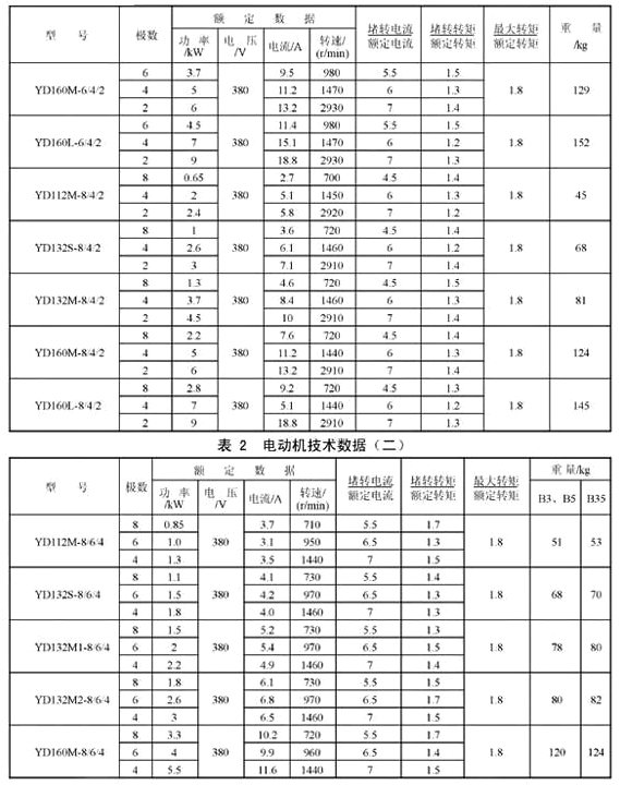 YD112M-8/6/4,YD132S-8/6/4,YD132M1-8/6/4,YD132M2-8/6/4,YD160M-8/6/4,YD160M-6/4/2,