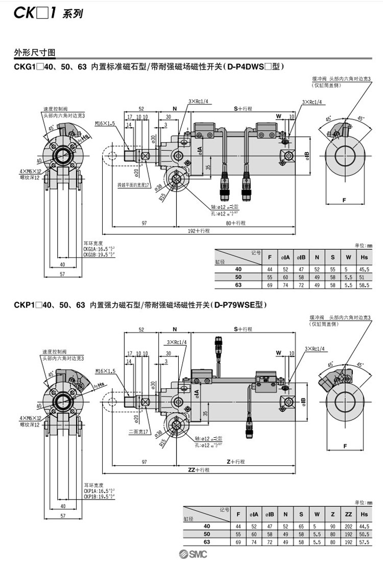 CKG1A40-50,CKG1A50-50,CKG1A63-50,CKG1B40-50,CKG1B50-50,CKG1B63-50,SMC夾緊氣缸