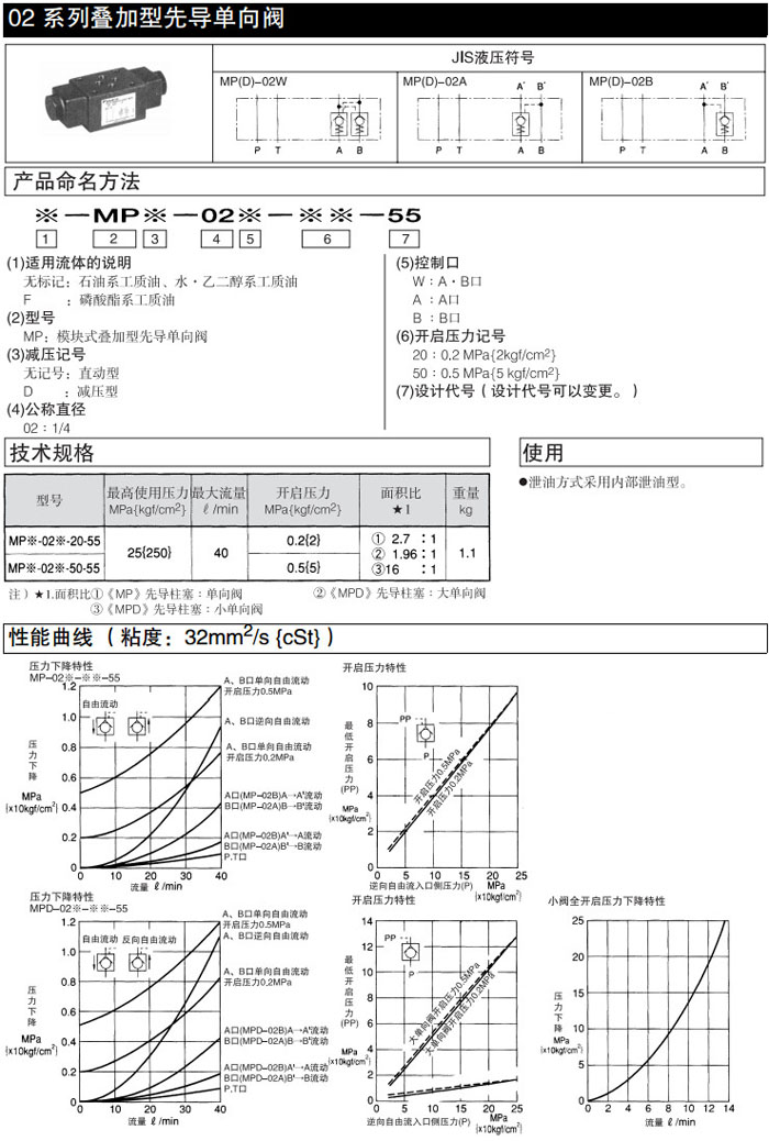 MP-02W,MP-02A,MP-02B,MPD-02W,MPD-02A,MPD-02B,MP-02W-20-55,DAIKIN疊加型先導(dǎo)單向閥