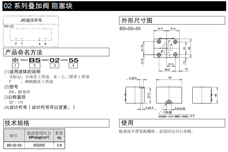BS-02-55,DAIKIN疊加閥壓力阻塞塊