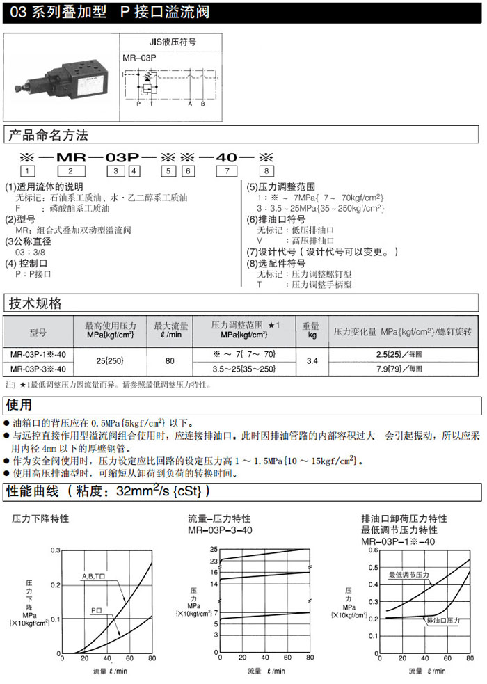 MR-03P-1-40,MR-03P-1V-40,MR-03P-3-40,MR-03P-3V-40,DAIKIN疊加型溢流閥