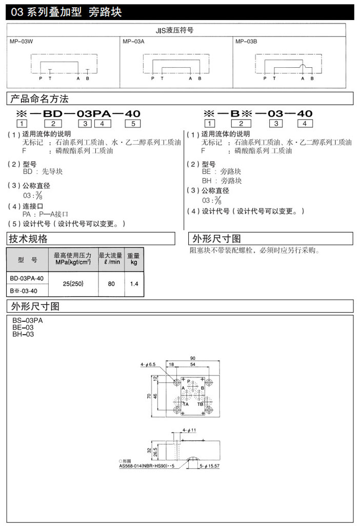 BD-03PA-40,BE-03-40,BH-03-40,DAIKIN疊加型旁路塊